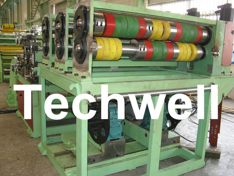 A linha de aço da máquina de corte é composta do uncoiler, do pinch&feeder, da talhadeira, do re-coiler etc. Sua função é cortar bobinas largas às tiras estreitas bobina, que podem ser usadas moendo, tubo de solda, a curvatura fria que forma etc. .at the same time que muda a lâmina material diferente pode cortar várias bobinas do metal.